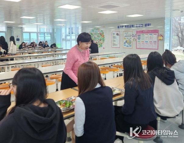 코리아타임뉴스 사회팀 | 충청북도옥천교육지원청 박정애 교육장은 3월 25일 옥천여자중학교를 방문하여 신학기 학교급식 운영 상황을 점검하고, 식중독 예방을 위한 현장 대응 실태를 살폈다.