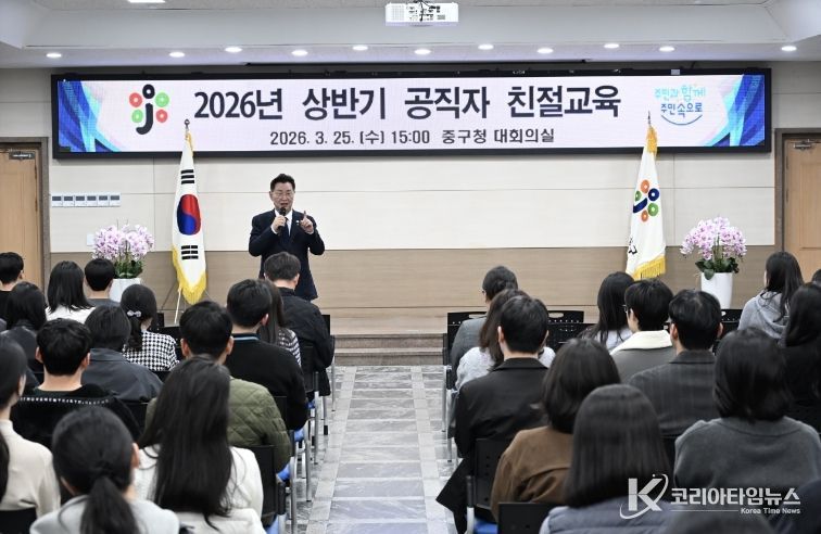 코리아타임뉴스 대전취재본부 | 대전 중구는 25일 중구청 대회의실에서 공직자의 소통 능력 및 민원응대 역량 강화를 위해 직원 150여 명을 대상으로 ‘2026년 상반기 친절교육’을 실시했다고 밝혔다.