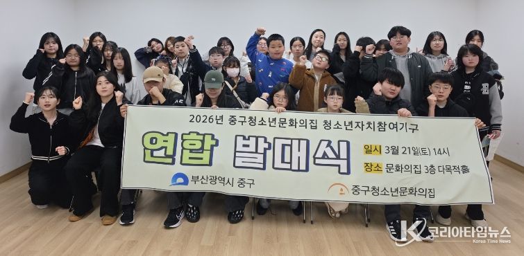 코리아타임뉴스 이아름 기자 | 재단법인 내원청소년단 부산중구청소년문화의집(관장 김용숙)은 지난 3월 21일(토), 청소년 자치참여활동의 활성화를 다짐하는 ‘2026년 청소년자치참여기구 연합발대식’을 개최했다.