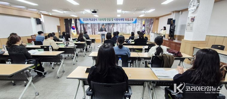 코리아타임뉴스 사회팀 | 경상북도울진교육지원청은 3월 25일 15시 3층 대회의실에서 관내 초, 중, 고등학교 영양교사 및 영양사 21명을 대상으로 2026년 학교급식 기본방향 전달 및 식중독 예방 특별교육을 실시했다.