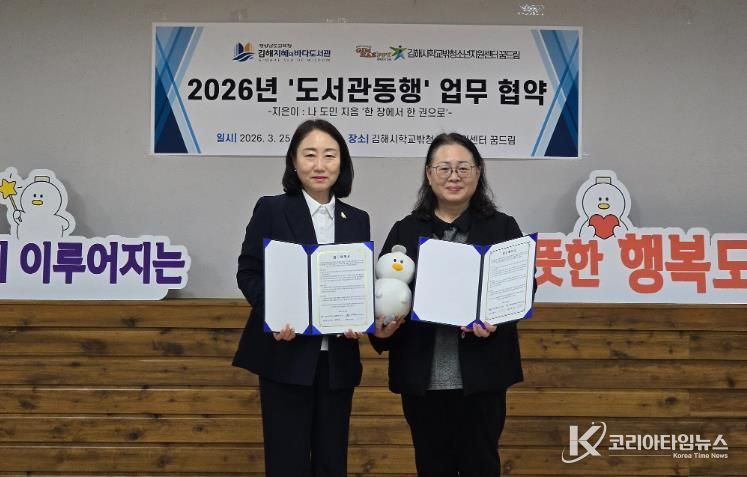 코리아타임뉴스 오영주 기자 | 김해시학교밖청소년지원센터는 지난 25일 경남도교육청 김해지혜의바다도서관과 학교 밖 청소년 지원을 위한 업무협약(MOU)을 체결했다고 밝혔다.