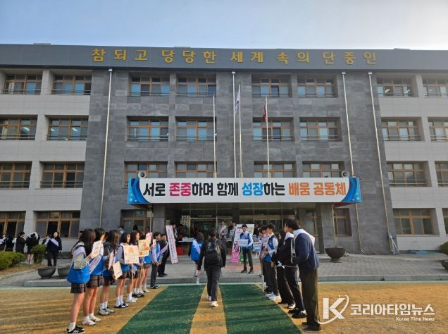 코리아타임뉴스 사회팀 | 충청북도단양교육지원청은 3월 26일(목) 단양중학교에서 생명존중 의식을 높이고 안전한 학교를 만들기 위한 학교폭력 예방 캠페인을 진행했다.