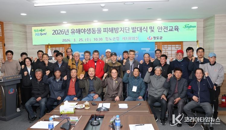 코리아타임뉴스 경북취재본부 | 청도군은 지난 25일 2026년 유해야생동물피해방지단 발대식 및 안전교육을 실시했다.