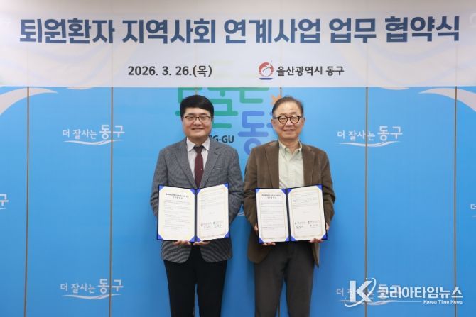 코리아타임뉴스 의료보건팀 | 울산 동구는 3월 26일 오후 2시 퇴원 환자의 안정적인 지역사회 복귀를 지원하기 위해 상록수 요양병원과 퇴원 환자 지역사회 연계 업무 협약을 체결했다. 해당 의료기관은 퇴원 예정 환자중 돌봄이 필요한 고위험군을 선별하고 환자 평가표 등을 작성해 동구에 연계하는 역할을 맡는다.