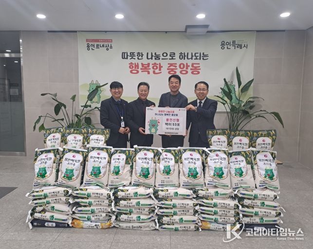 용인신협은 23일 중앙동에 23일 백미 10㎏ 53포(161만 원 상당)를 기탁했다. 이번에 전달한 쌀은 지난 16일 용인신협 본점 이전 기념식에서 축하 화환 대신 받은 백미로 마련했다. 백미는 지역 취약계층 가구에 전달할 예정이다. 용인신협은 지난해 김치 10㎏ 150통, 이불 20세트와 학용품 25세트를 지원하는 등 지역사회와 함께하는 나눔 활동을 꾸준히 이어오고 있다. 정 이사장은 “신협의 나눔 가치를 바탕으로 지역사회에 보탬이 되고자 했다”며 “앞으로도 나눔 활동을 지속해 나가겠다”고 했다.
