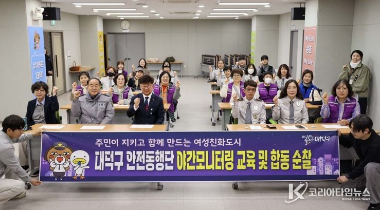 코리아타임뉴스 대전취재본부 | 대전 대덕구는 27일 주민 참여를 통한 안전한 마을 환경 조성을 위해 송촌동 일원에서 ‘안전동행단 야간모니터링 교육 및 합동순찰’을 실시했다고 밝혔다.