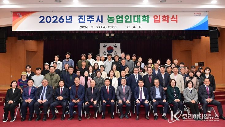 코리아타임뉴스 경남취재본부 | 진주시는 지난 27일 시청 시민홀에서 입학생 131명과 내빈이 참석한 가운데 전문 농업경영인 양성을 위한 ‘농업인대학 입학식’을 개최했다.