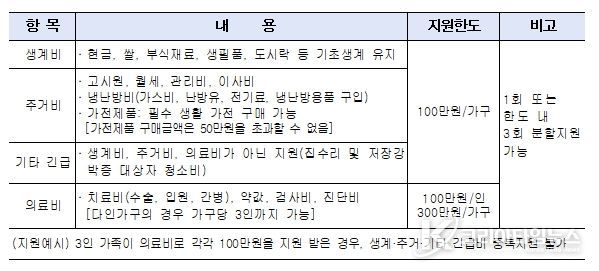 ‘취약계층 위기가구 지원사업’은 긴급복지지원 등 공적 지원을 받지 못한 위기가구에 생계비, 주거비 등 가구당 최대 100만 원까지 지원한다. 단, 의료비는 개인 기준으로 가구당 최대 3인까지 300만 원을 지원받을 수 있다.