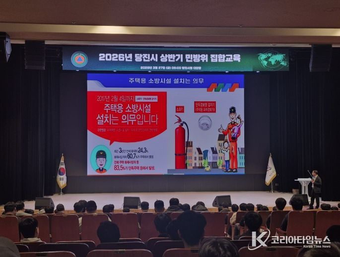 코리아타임뉴스 김택호 기자 | 당진시는 민방위대원의 재난 대응 능력 향상과 국가 비상사태 대비 태세 확립을 위해 지난 27일‘2026년 상반기 첫 민방위 집합교육’을 실시했다고 30일 밝혔다.