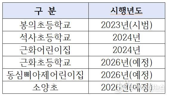 한편 시는 지난 2023년 봉의초등학교를 시작으로 2024년 석사초와 근화어린이집 등 총 3곳에서 탄력운영을 도입해 왔다.