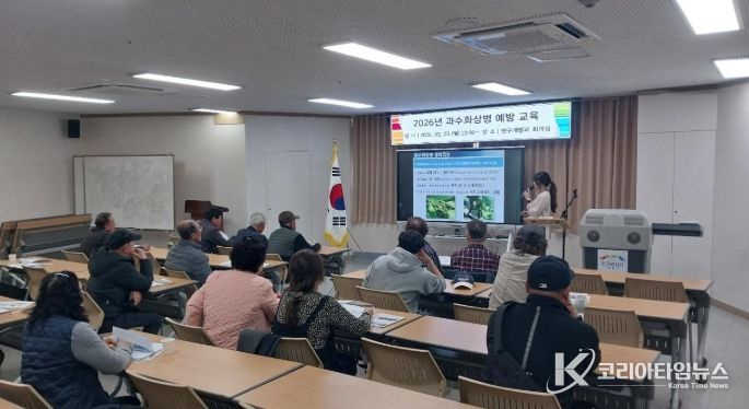 이번 교육에서는 권효린 주무관(농촌지도사)이 화상병의 주요 증상과 예방법, 농업인이 지켜야 할 관리 수칙, 발생 시 공적 방제 절차 등에 대해 중점적으로 안내했다.