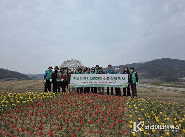 코리아타임뉴스 세종취재분부 | 세종시 금남면(면장 이선영) 새마을지도자협의회(회장 이원국·송은순)가 30일 원봉리 금강자전거길 인근 유휴부지에 소나무와 잣나무 총 360주를 식재하는 행사를 진행했다.
