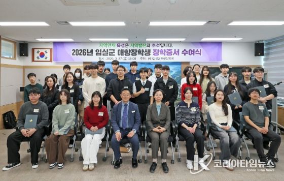 코리아타임뉴스 전북취재본부 | (재)임실군애향장학회(이사장 심민)가 27일, 장학생으로 선발된 대학생과 고등학생을 대상으로 2026년도 임실군 애향장학생 장학증서 수여식을 개최했다.
