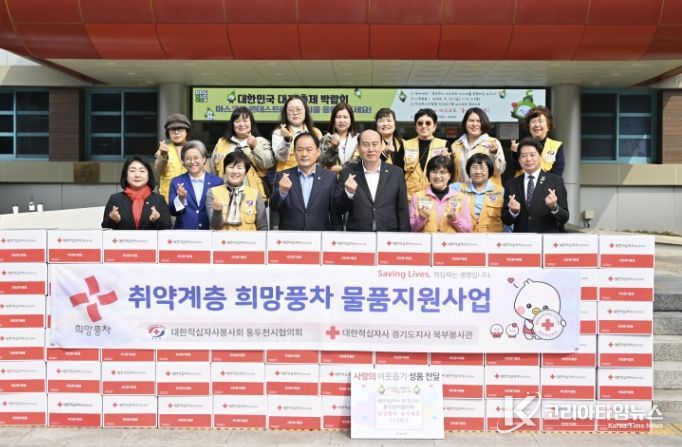 코리아타임뉴스 경기취재본부 | 대한적십자사 동두천시봉사회는 지난 27일 오전, 동두천 관내의 취약계층 지원을 위해 부식 세트 110상자를 지원했다고 밝혔다.