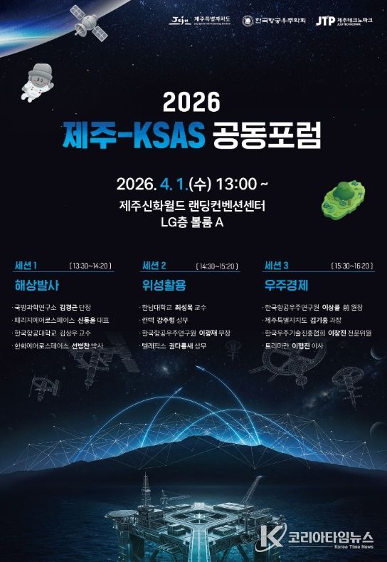 제주특별자치도와 한국항공우주학회가 주최하고 제주테크노파크(원장 지영흔, 제주TP)가 주관하는 ‘2026년 제주특별자치도-한국항공우주학회(KSAS) 공동포럼’이 오는 4월 1일 제주신화월드에서 개최된다.