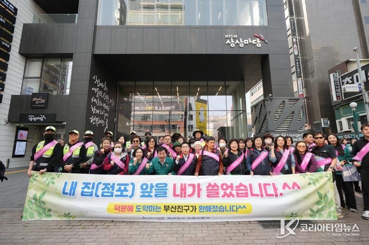 코리아타임뉴스 부산취재본부 | 부산 부산진구는 지난 27일 오후 서면1번가 일원에서 도시환경정비 및‘내 집(점포) 앞 내가 쓸기’캠페인을 실시했다고 밝혔다.