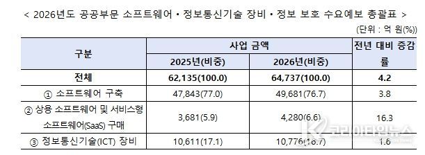 코리아타임뉴스 오영주 기자 | 과학기술정보통신부는 3월 31일 2026년 공공부문 소프트웨어(SW)·정보통신기술 장비·정보 보호 수요예보 결과를 발표했다.