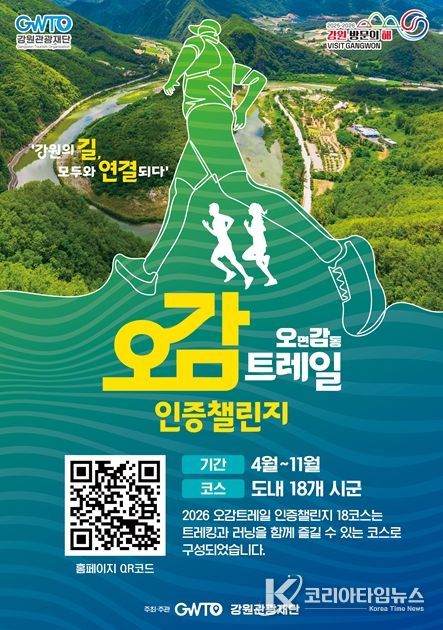 코리아타임뉴스 이아름 기자 | 강원관광재단은 지난해 좋은 성과를 거둔‘오감트레킹’사업을 더욱 확장하여, 강원 트레일 관광 활성화를 위한‘2026년 오감트레일’사업으로 본격 추진한다고 밝혔다.