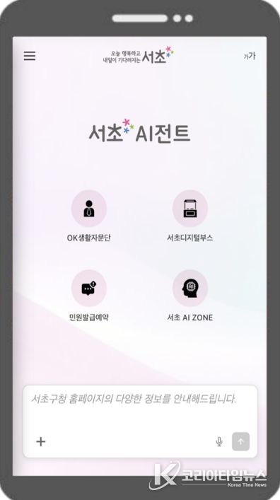 코리아타임뉴스 기동취재팀 | 서울 서초구는 지방자치단체 최초 행동형 AI 챗봇인 ‘서초 AI전트’의 서비스 고도화를 통해 기능 확장에 나선다고 밝혔다.