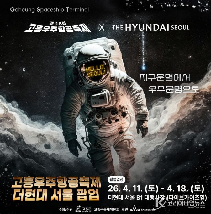 코리아타임뉴스 전남취재본부 | 고흥군은 오는 4월 11일부터 18일까지 서울 여의도에 위치한 더현대 서울에서 ‘고흥우주항공축제 팝업스토어’를 개최한다고 밝혔다.