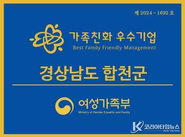 코리아타임뉴스 경남취재본부 | 합천군은 일·가정 양립 가능한 가족친화 직장문화 확산을 위해 2026년 가족친화인증 신청을 안내하며 관내 기업과 공공기관의 적극적인 참여를 홍보하고 있다.