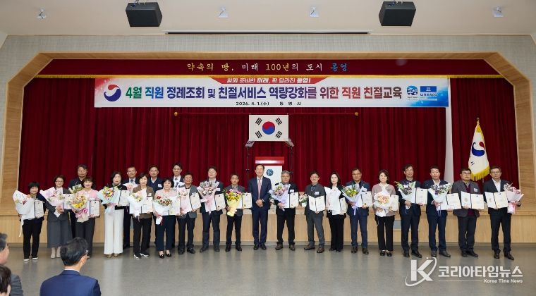 코리아타임뉴스 오영주 기자 | 통영시는 1일 시청 강당에서 열린 4월 직원 정례조회에서 2025년 성과관리 자체평가 결과에 따른 우수부서 시상식을 개최했다.