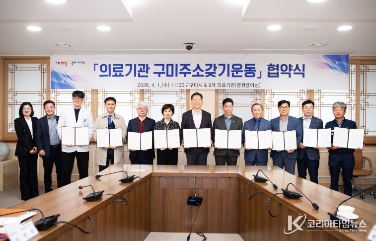 코리아타임뉴스 의료보건팀 | 구미시가 병원급 이상 의료기관 9곳과 손잡고 「구미愛 주소갖기 운동」을 본격 추진하기로 했다. 전체 직원의 80~90%를 구미시 주소로 전환하겠다는 목표를 세우고, 인구 41만 회복을 위한 실질적 동행에 나섰다.
