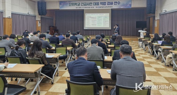 이번 연수는 교내에서 폭력, 안전사고 등 긴급 상황이 발생하면 초기에 체계적으로 대응해 피해를 최소화하고, 학교 위기관리 대응 능력을 높이기 위해 마련됐다.