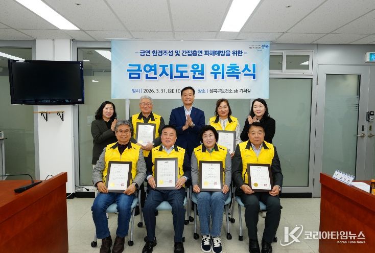 코리아타임뉴스 사회팀 | 서울 성북구가 금연환경 조성과 간접흡연 피해 예방을 위해 지난 31일 신규 금연지도원 위촉식을 열고 본격적인 활동에 들어갔다.