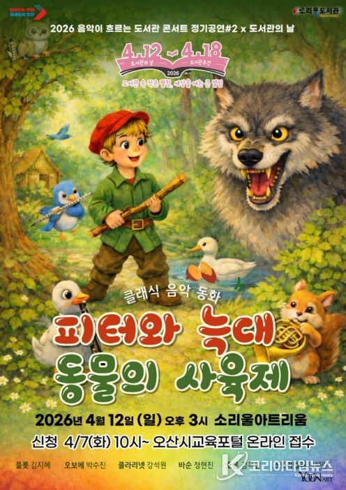 코리아타임뉴스 기동취재팀 | 오산시 소리울도서관은 오는 4월 12일 오후 3시 소리울아트리움에서 ‘2026 도서관의 날’을 기념해 온 가족이 클래식의 매력을 즐길 수 있는 '음악이 흐르는 도서관 콘서트'를 개최한다.