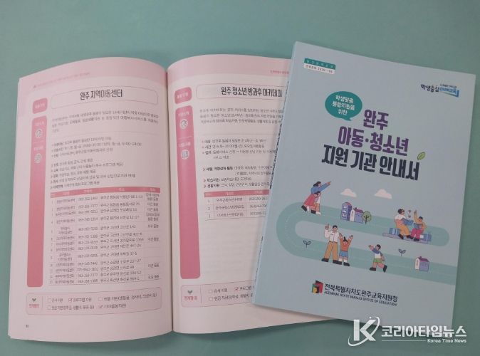 코리아타임뉴스 사회팀 | 전북특별자치도완주교육지원청은 완주와 전주 지역의 아동·청소년 지원 기관 정보를 총망라한 ‘학생맞춤통합지원을 위한 완주 아동·청소년 지원 기관 안내서’를 발간했다.