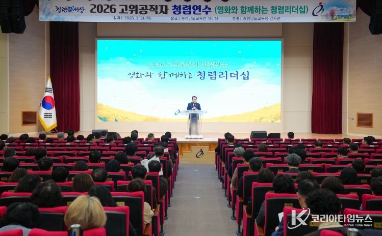 코리아타임뉴스 사회팀 | 충남교육청은 소통과 공감을 통해 청렴한 조직문화 확산을 추구하고 있으며, 영화와 함께하는 고위공직자 청렴 연수를 개최하고 2026년 청렴도 향상을 위한 출발을 알렸다.