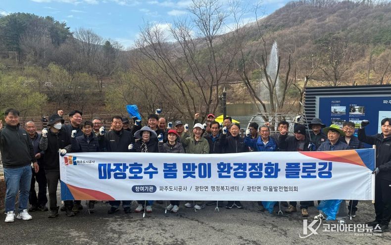 코리아타임뉴스 윤광희 기자 | 파주도시공사는 지난 31일 파주시 광탄면 행정복지센터 및 마을발전협의회와 함께 마장호수 봄맞이 환경정화 플로깅에 나섰다.