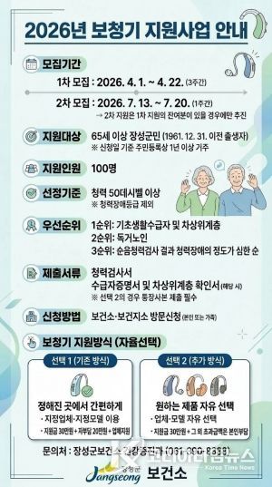코리아타임뉴스 의료보건팀 | 장성군이 올해부터 어르신 보청기 지원사업에 ‘선택형 지원 방식’을 도입한다.