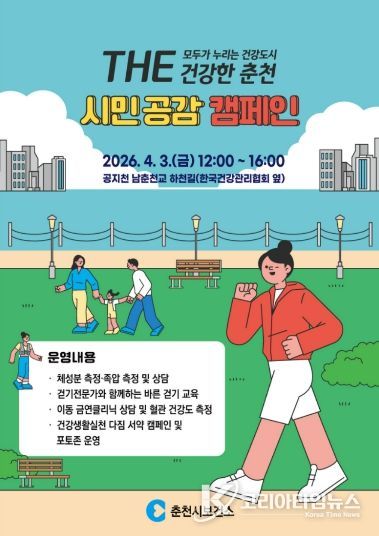 코리아타임뉴스 의료보건팀 | 춘천시가 ‘THE 건강한 춘천’ 프로젝트의 일환으로 시민 참여, 공감형 건강 실천 캠페인에 나선다.