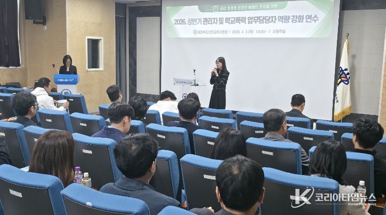 코리아타임뉴스 사회팀 | 충청북도진천교육지원청은 4월 2일 학교지원센터 시청각실에서 2026. 상반기 관리자 및 학교폭력 책임교사 대상 역량 강화 연수를 실시했다.