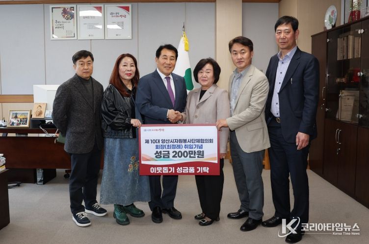 양산시 관계자는 “나눔을 실천해 주신 최정례 회장님께 감사드리며, 전달받은 성금은 도움이 필요한 분들에게 소중히 전달하겠다”고 전했다.
