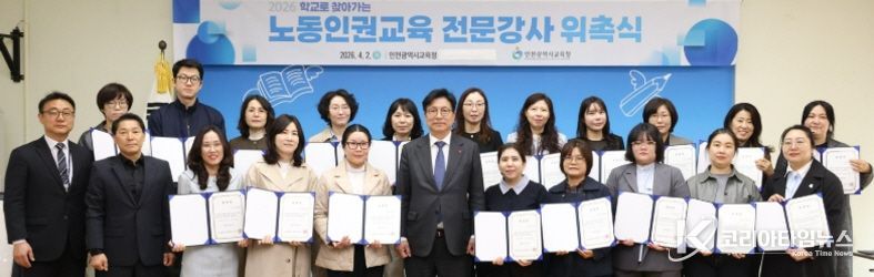 코리아타임뉴스 사회팀 | 인천광역시교육청은 2일 학생들이 노동의 가치를 배우고 인권 감수성을 함양할 수 있도록 돕는 ‘2026학년도 학교로 찾아가는 노동인권교육 전문강사단’ 위촉식을 개최했다.