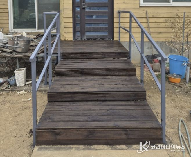 둔포면은 상담 직후 해당 가구를 통합사례관리 대상자로 선정하고 신속한 지원에 나섰다. 위험한 기존 구조물을 철거한 뒤 견고한 자재로 계단을 재시공했으며, 거동이 불편한 어르신을 위해 양옆에 안전 난간(핸드레일)을 추가 설치해 보행 안전성을 확보했다.