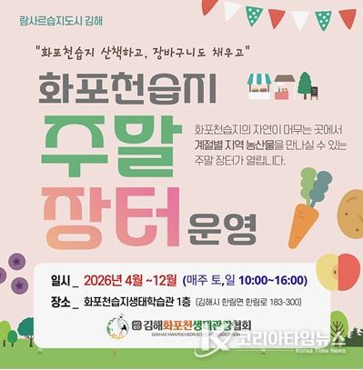 코리아타임뉴스 오영주 기자 | 김해시는 연말까지 화포천습지 생태학습관에서 주말장터가 운영된다고 3일 밝혔다.