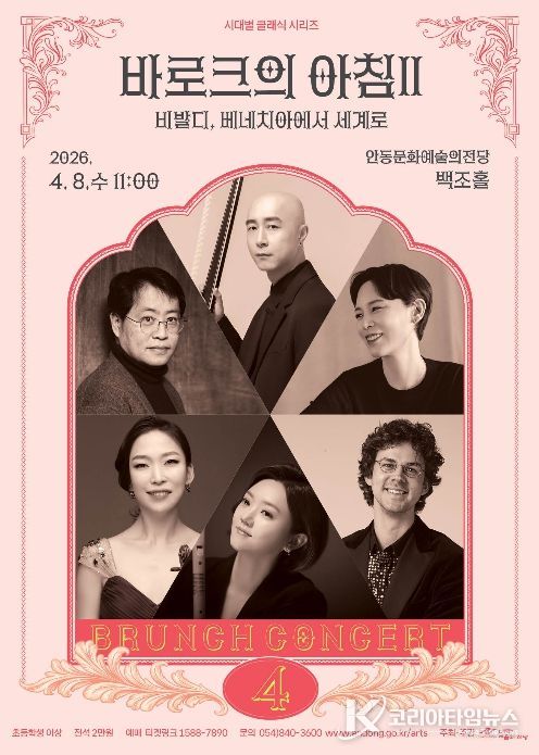 코리아타임뉴스 노승선 기자 | 안동문화예술의전당은 클래식 애호가들을 위한 브런치 콘서트를 매월 둘째 주 수요일 아침에 선보이고 있다. 시대별 클래식의 두 번째 무대인 4월 브런치 콘서트〈바로크의 아침Ⅱ - 비발디, 베네치아에서 세계로〉가 오는 4월 8일 오전 11시 안동문화예술의전당 백조홀에서 열린다.