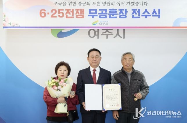 코리아타임뉴스 기동취재팀 | 여주시는 지난 2일 6‧25전쟁 무공훈장 전수식을 개최하고, 故이석만 상사의 공적을 기리며 화랑무공훈장을 유가족에게 전수했다.
