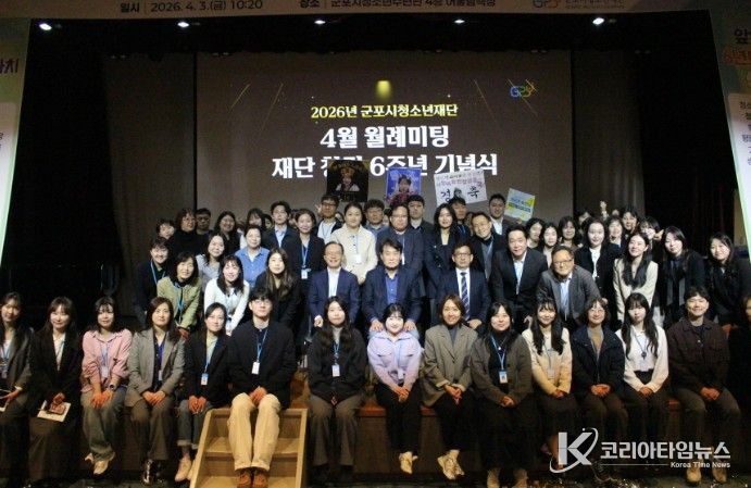 코리아타임뉴스 사회팀 | 군포시청소년재단은 4월 3일 군포시청소년수련관 청소년어울림극장에서 4월 월례미팅을 열고, 창립 6주년을 맞아 미래도약 의지를 다지는 자리를 마련했다. 이날 행사에는 군포시청소년재단 임직원, 화용선차예문화연구소 등 80여 명이 참석했다.