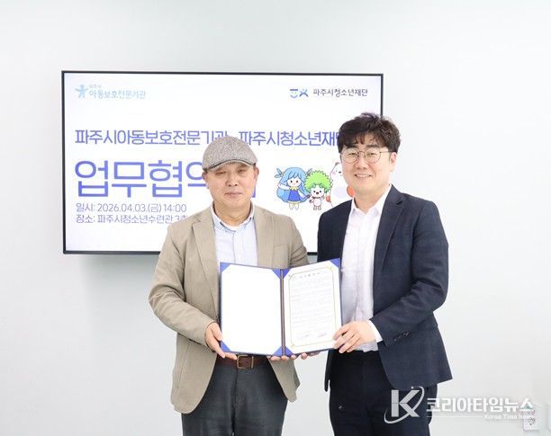 코리아타임뉴스 윤광희 기자 | (재)파주시청소년재단과 파주시아동보호전문기관은 파주시 아동 및 청소년의 건강한 성장과 복지 증진을 위해 상호 협력하는 업무협약(MOU)을 체결했다고 밝혔다.