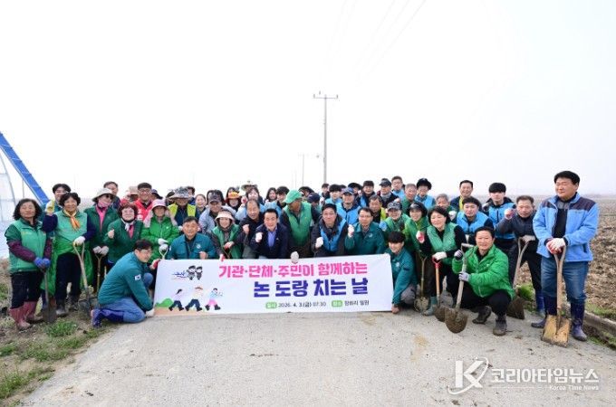 코리아타임뉴스 충남취재본부 | 논산시가 본격적인 영농철을 앞두고 3일 채운면 장화리 일원에서‘논도랑 치는 날’캠페인을 전개했다.