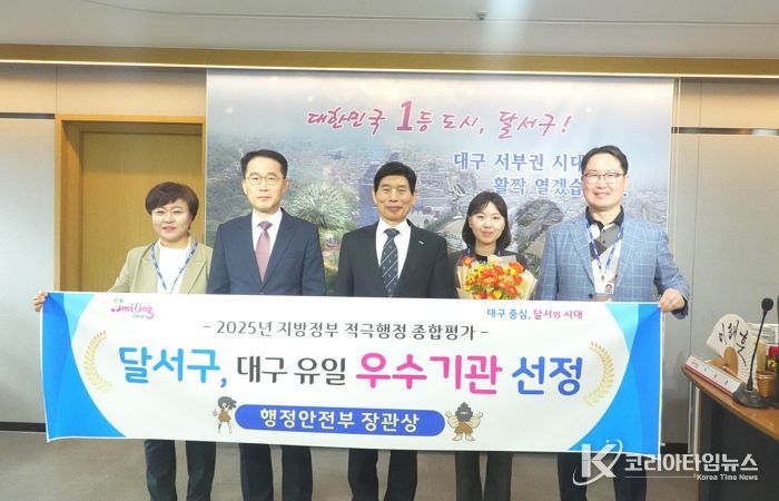 코리아타임뉴스 노승선 기자 | 대구 달서구가 행정안전부 주관‘2025년 지방정부 적극행정 종합평가’에서 대구 자치구 중 유일하게 우수기관으로 선정되고, 장관 표창까지 수상하는 성과를 거뒀다.
