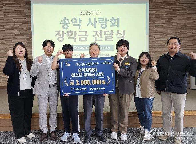 코리아타임뉴스 김택호 기자 | 송악사랑회는 3일 송악청소년방과후아카데미에 장학금을 전달했다. 이번 장학금 전달식은 송악청소년문화의집에서 진행됐으며, 재학생 3명에게 매월 10만원씩 총 300만원이 지원된다. 송악사랑회는 청소년들의 올바른 성장에 기여하고자 하는 의지를 표명하며, 앞으로도 후원을 지속할 계획임을 밝혔다.