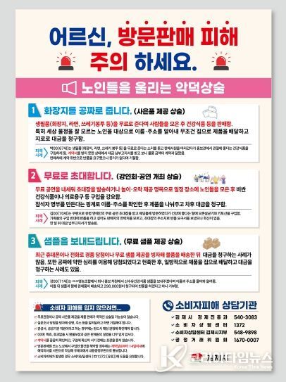 코리아타임뉴스 전북취재본부 | 김제시가 최근 고령층을 대상으로 한 방문판매 홍보관(일명 ‘떴다방’) 영업이 확산됨에 따라 소비자 피해 예방을 위한 시민들의 각별한 주의를 당부했다.