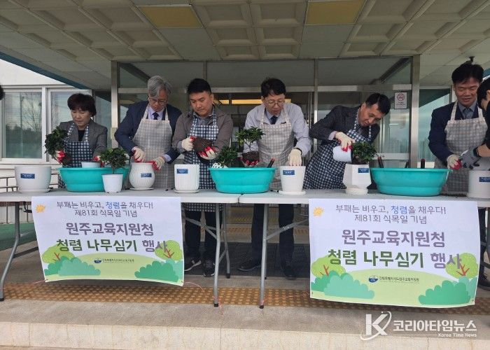 코리아타임뉴스 사회팀 | 강원특별자치도원주교육지원청은 4월 6일 오전 9시 30분, 원주교육지원청 청사 현관 앞에서 제81회 식목일 기념 ‘청렴 나무심기’ 행사를 실시했다.