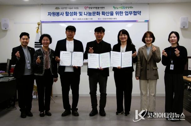 코리아타임뉴스 경기취재본부 | 안성시자원봉사센터는 지난 6일, 안성시자원봉사센터 강의실에서 (사)마을과사람들, 경기도아동돌봄안성센터와 지역사회 복지 발전 및 나눔 문화 확산을 위한 업무협약을 체결했다.